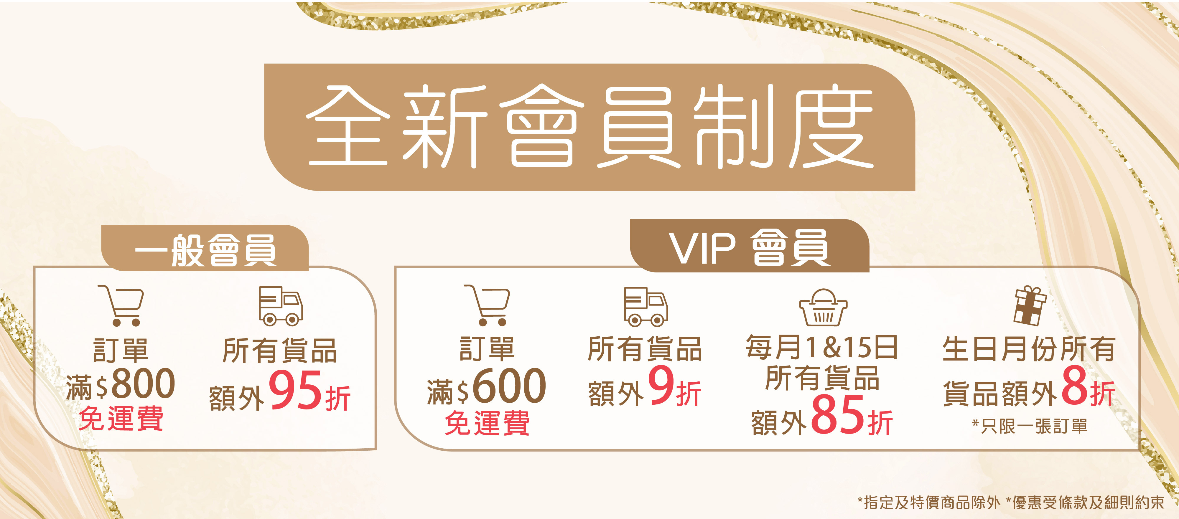 首次登記成為會員及購物滿$800即享85折優惠(適用於指定產品)