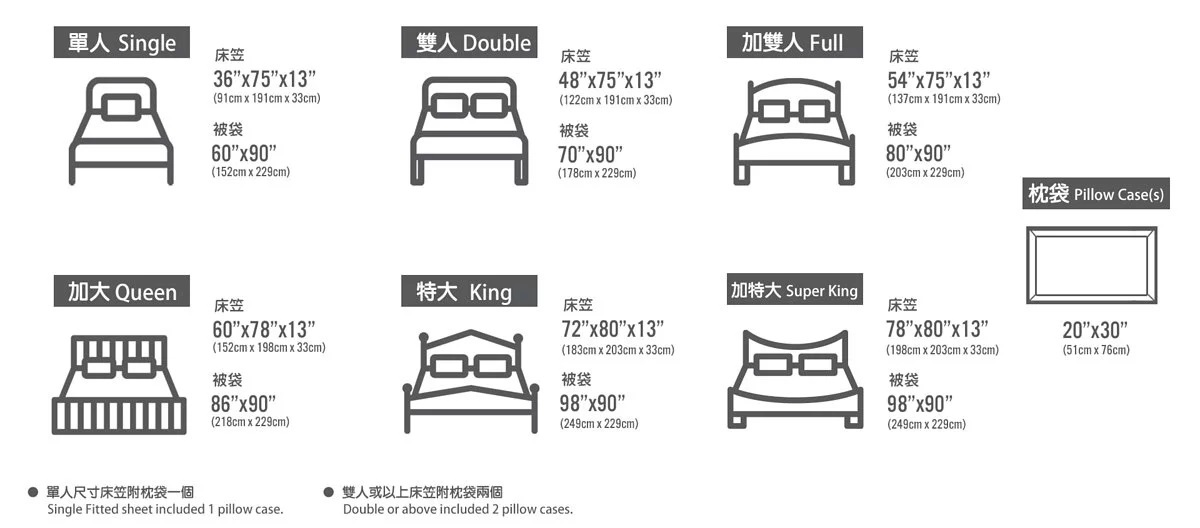 *According to International Industrial Standard Thread Count: Fitted Sheet and Pillow Case(s) & Quilt Cover 410(±5%) per inch²