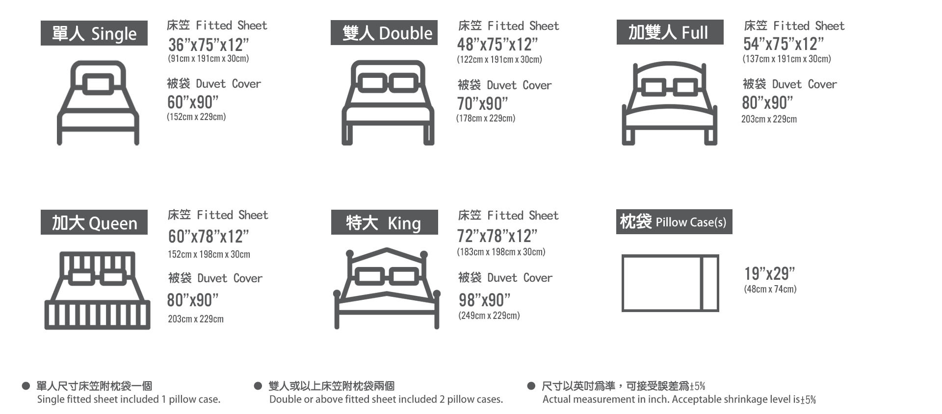 *According to International Industrial Standard Thread Count: Fitted Sheet and Pillow Case(s) & Quilt Cover 220(±5%) per inch²