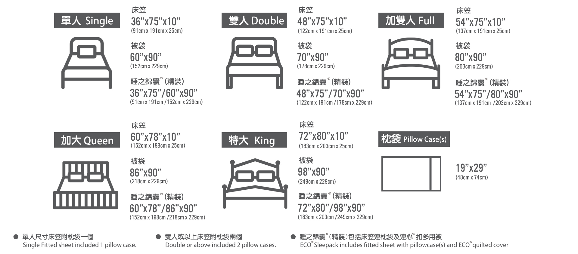 *According to International Industrial Standard Thread Count: Fitted Sheet and Pillow Case(s) & Quilt Cover 150 (±5%) per inch2