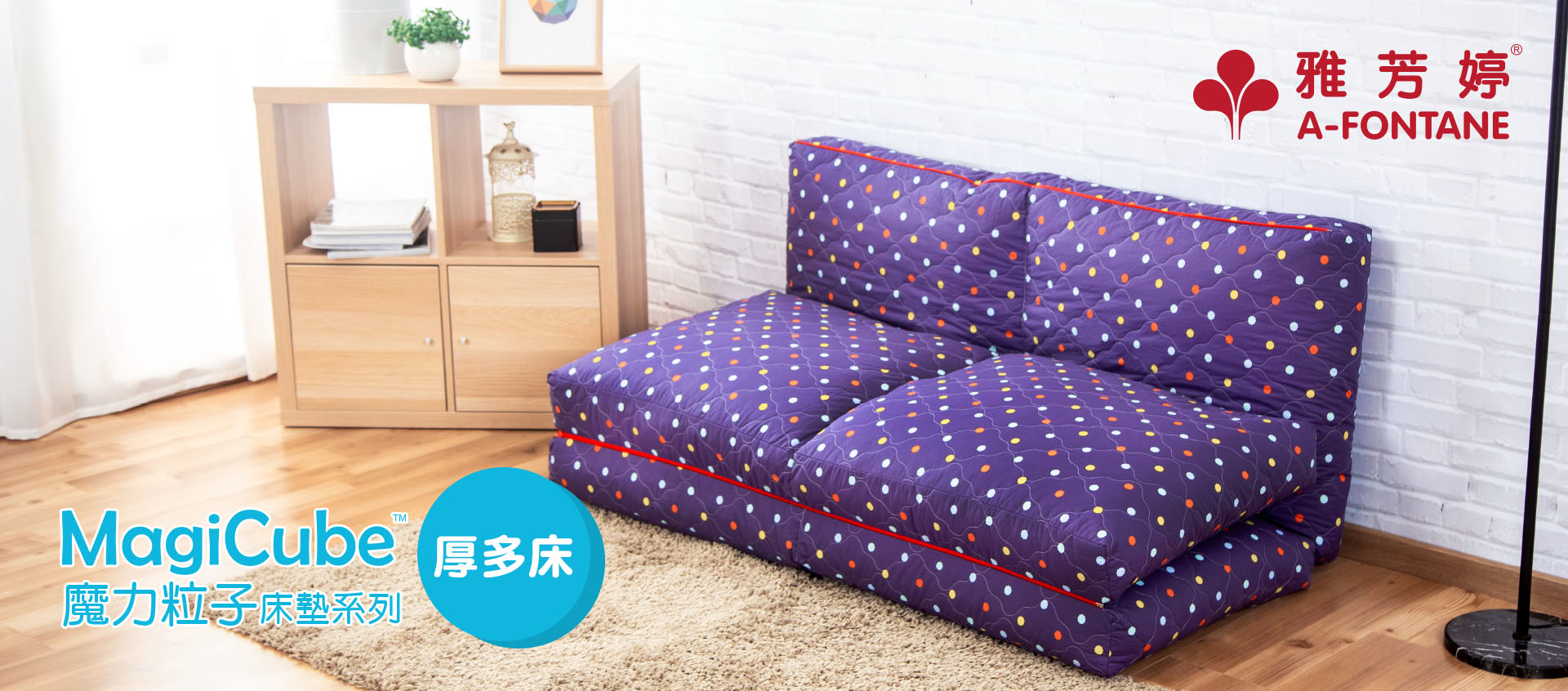 魔力粒子系列為居住環境狹窄的普羅大眾帶來多功能及便利的設計,讓你隨意躺臥都呈現最舒適自然的狀態,滿足坐、靠、躺三大需求。可摺疊式設計收納容易、省位方便,小巧蝸居也能生活得自在舒適。
