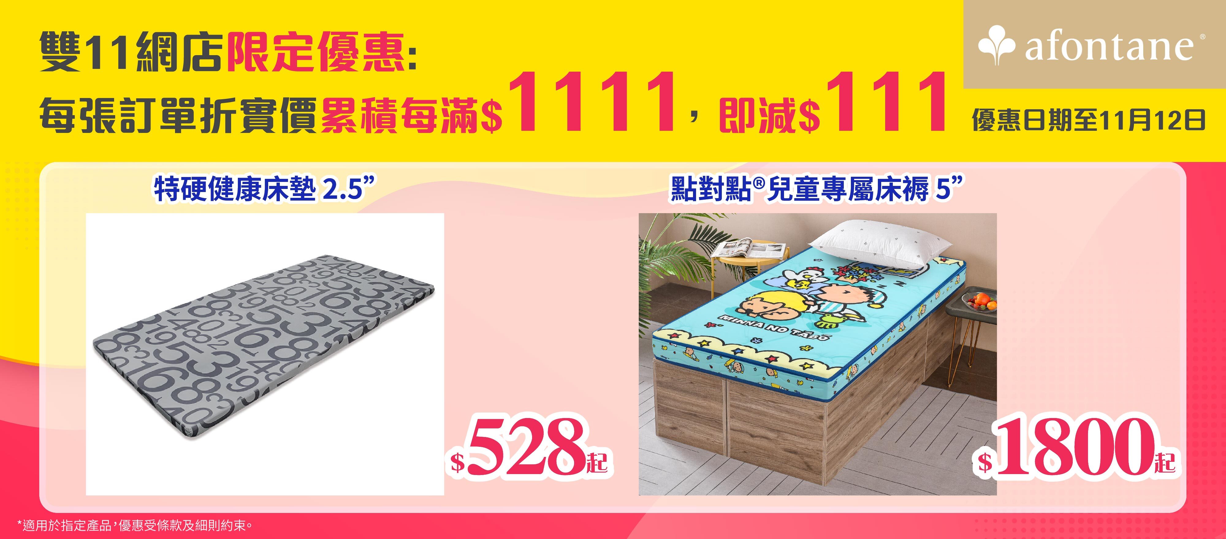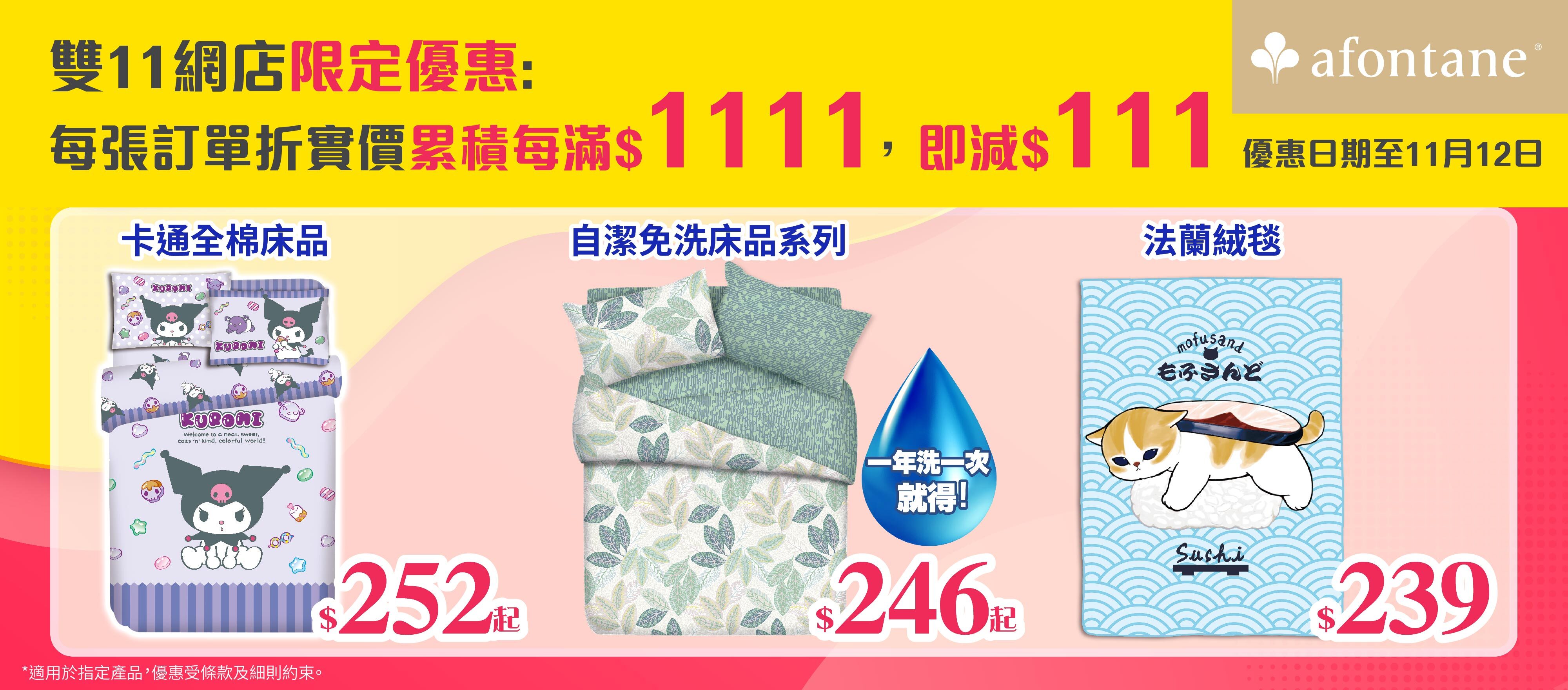 雙11活動 - 累積每滿$1111即減$111 (適用於指定產品, 廣告商品除外)